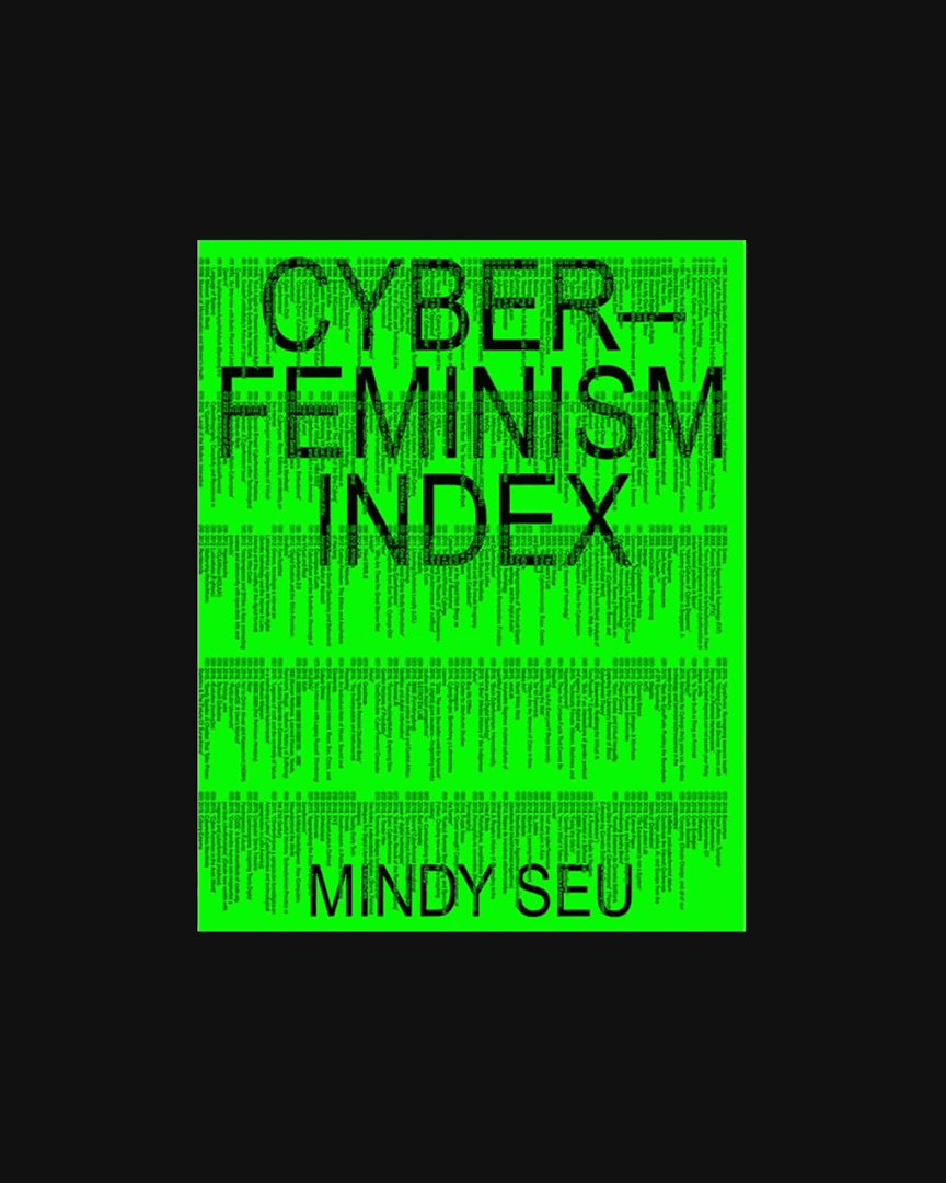 Books. Nov 2022. Cyberfeminism Index Book Launch. Neon green code-rain poster surfacing feminist hacks online. Source Laura Coombs / Another Graphic
