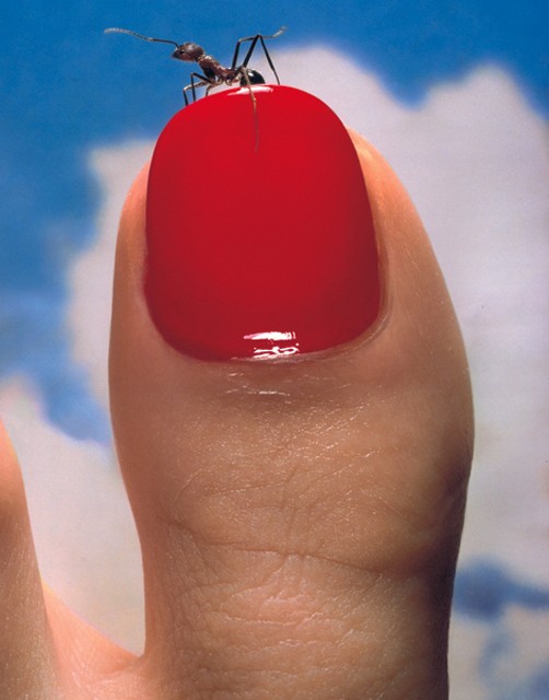 Photo. 1982. Red Toenail & Ant. Surreal scale and polish in a Hiro microcosm. Source Hiro / Condé Nast Archive